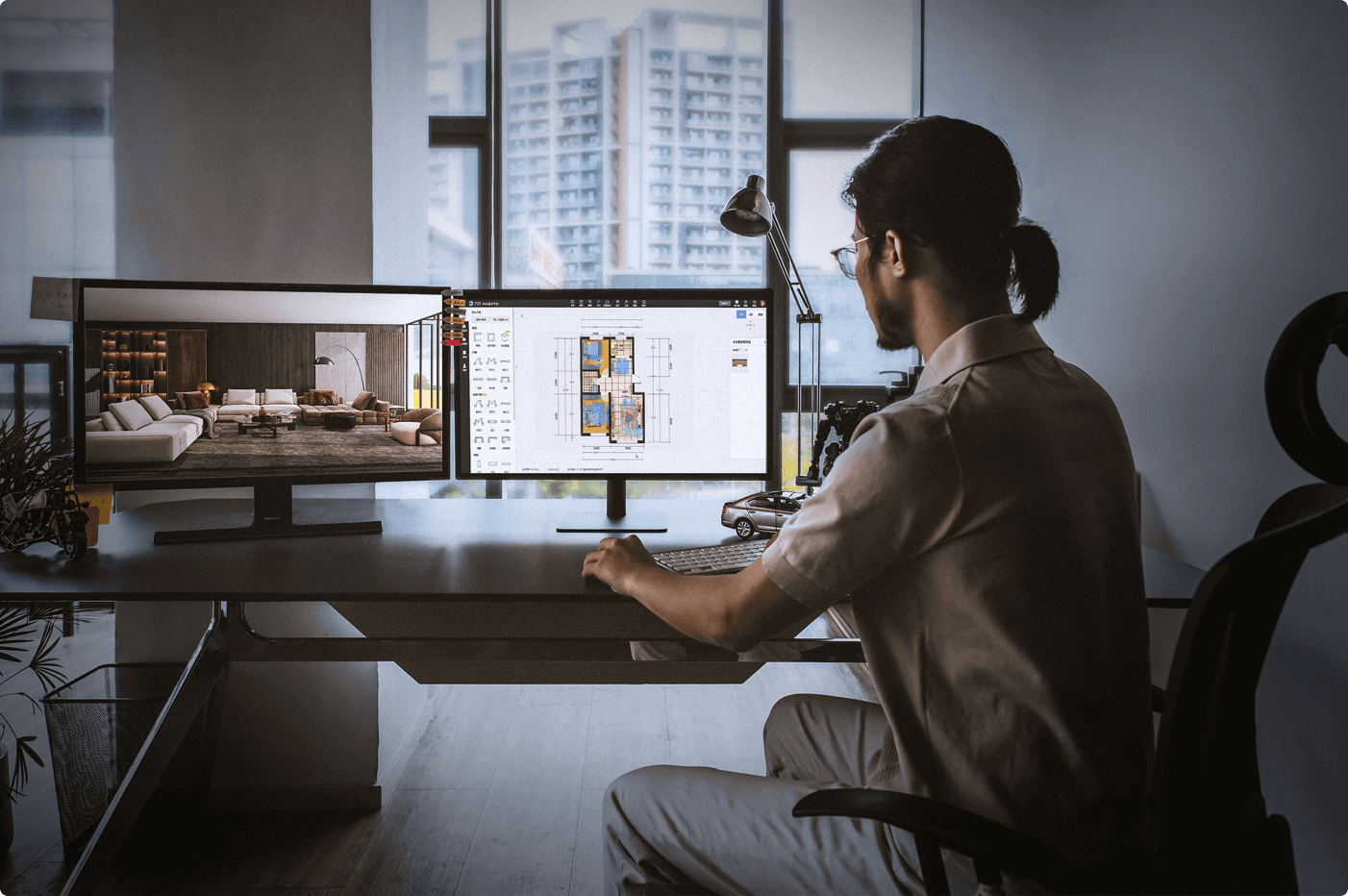 依托AI人工智能、大數(shù)據(jù)、云計算等核心技術,高效實現(xiàn)家具智能布置、智能匹配樣板間、櫥衣柜智能飾品、以圖搜模型、智能補光、智能渲染,一鍵出720°全景圖、全屋報價單、施工圖紙等多項功能,集合定制家具、瓷磚、衛(wèi)浴、吊頂墻面、門窗、水電施工等多個模塊,廣泛應用于泛家居各品類終端門店、裝修公司。