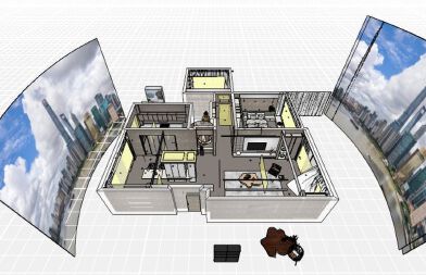每個空間至少2張效果圖+1張全案全景圖展示,方案描述完整,所有空間需命名。